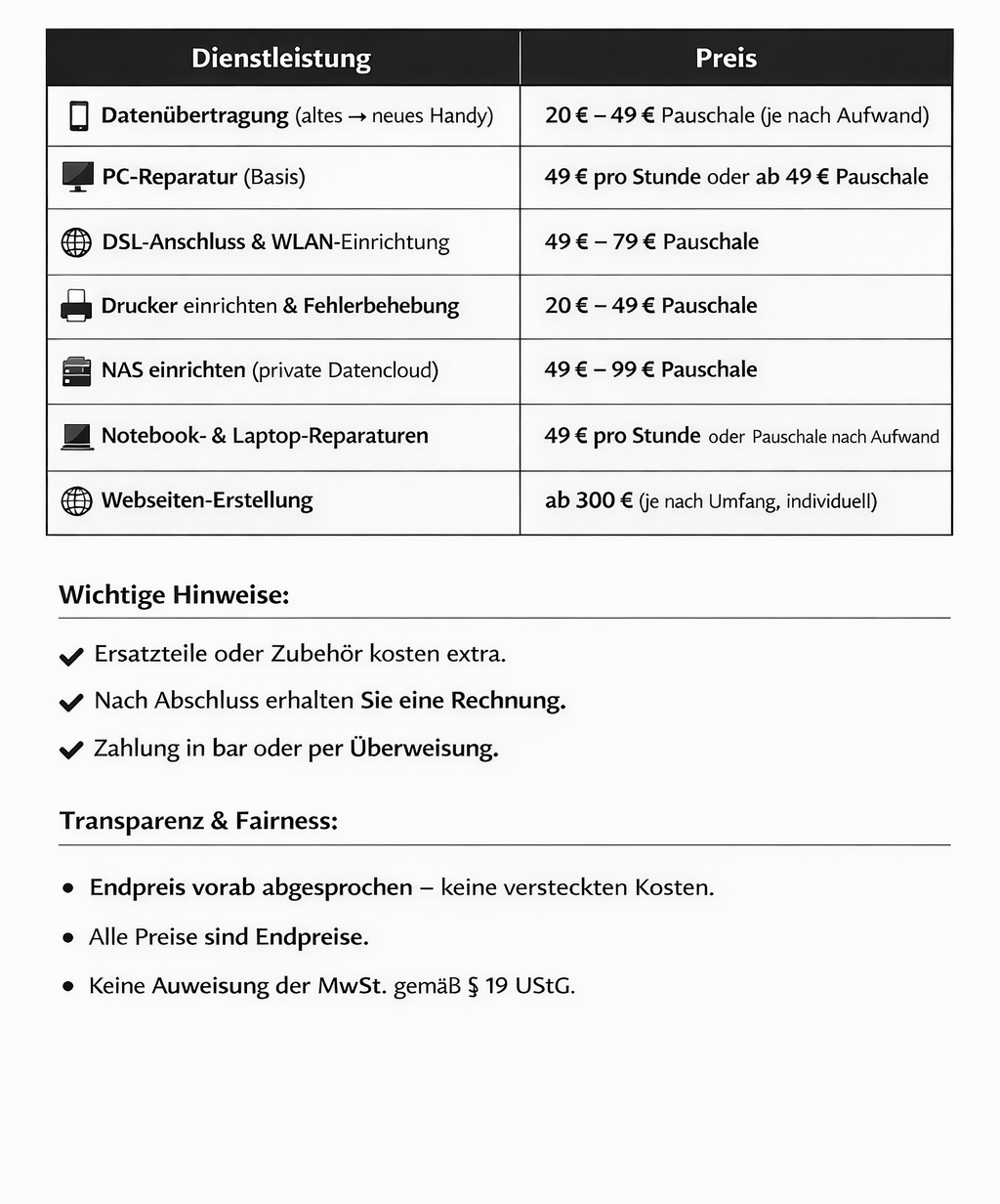 Preisliste – IT- & Technik-Dienstleistungen